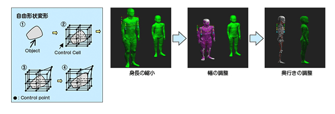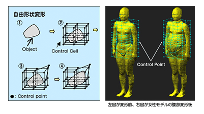 成人女性モデル(HANAKO)の腹部変形には、自由形状変形(Free-form Deformation)を応用しています。